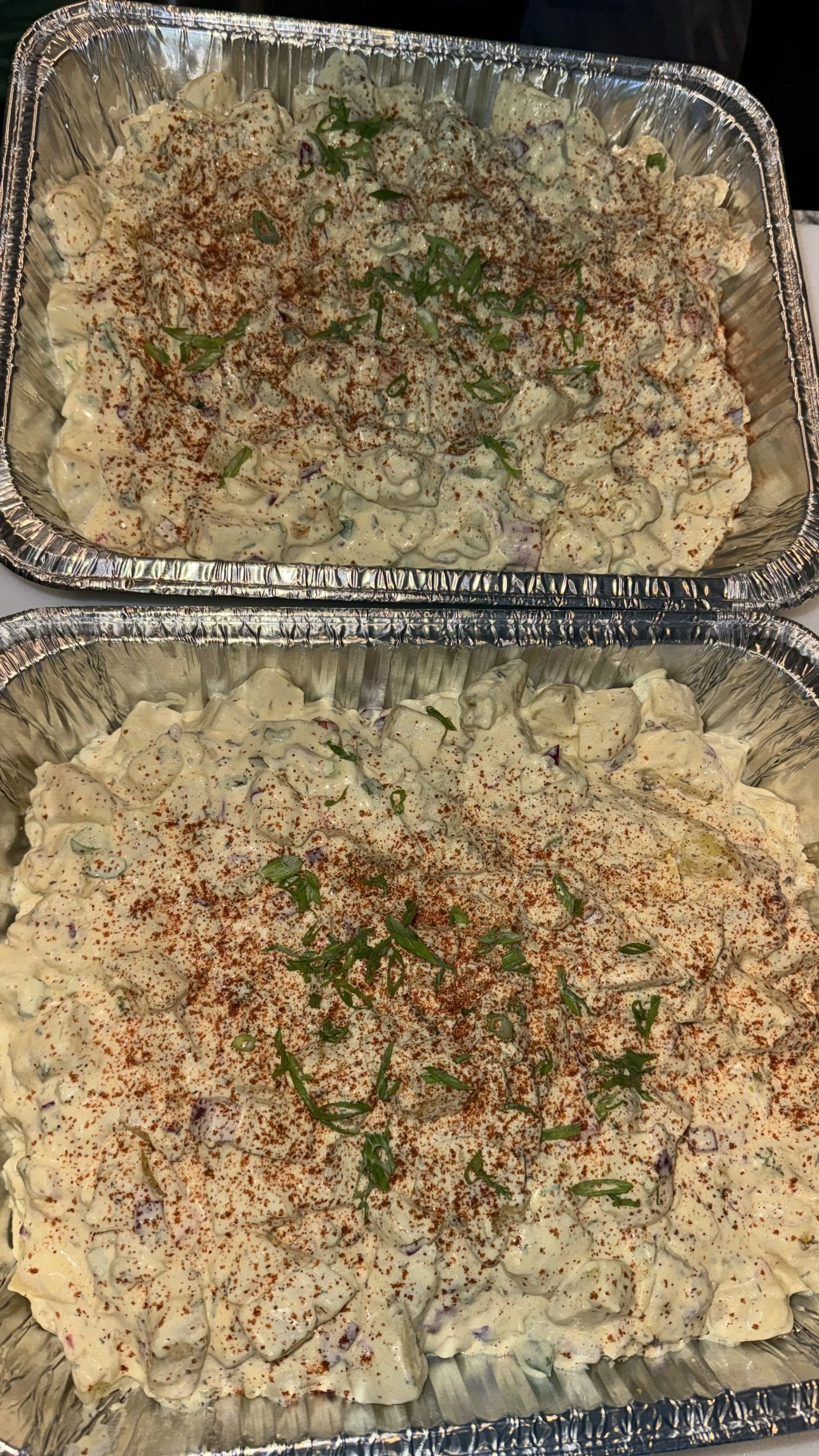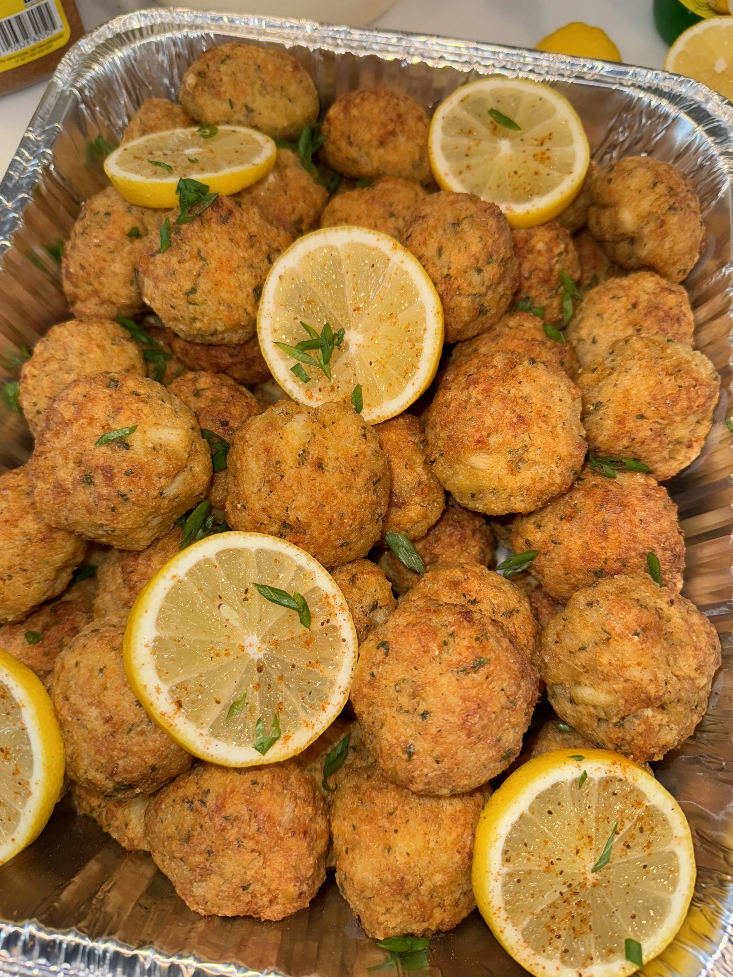 Menu Options APPETIZERS MAIN DISHES BREAKFAST/BRUNCH DESSERTS APPETIZERS Hummus and Pita Bread (V) Buffalo Cauliflower Bites (V) Cauliflower Steak with Chimichurri Sauce (V) Mac and Cheese Triangle Bites Stuffed Rolls (Spring (V), Chicken, or Shrimp) Gourmet Stuffed Rolls (Oxtail, Chicken, Cheesesteak, Cheeseburger, Salmon) Crab Dip with Pita Bread Buffalo Chicken Dip with Pita Bread Artichoke and Spinach Dip with Pita Bread Pasta Mac and Cheese Lobster Mac and Cheese Pasta Alfredo (Add on Chicken, Shrimp) Sides Rice (White, Yellow, or Vegetable) White Rice with coconut crème and pineapple salsa Rice and Peas French Fries/Sweet Potato Fries Mashed Potatoes (Regular or Garlic) Roasted or Baked Potatoes Candied Yams Breads Cornbread Dinner/ Sourdough Rolls Hawaiian Rolls Garlic Bread Vegetables Asparagus (Plain or With Mushrooms) Brussel Sprouts (Roasted, Garlic Parmesan, or Cranberries and Walnuts) Broccoli (V) Carrots (V) String Beans (V) Mixed Vegetables (V) Roasted Vegetables (V) Collard Greens (meat optional) Spinach (V) Succotash Chicken Curry Chicken Jerk Chicken Chicken Wings (Flavors: Baked, Buffalo, Firecracker, Garlic Parmesan, Jerk, Honey Jerk, Mango Jerk, Chesapeake, Teriyaki, Plain, Fried) Baked or Fried Chicken Additional Flavors: Buffalo, Firecracker, Garlic Parmesan, Jerk, Honey Jerk, Mango Jerk, Chesapeake, Teriyaki, Rosemary, Herb Roasted Chicken Wings (Flavors: Baked, Buffalo, Firecracker, Garlic Parmesan, Jerk, Honey Jerk, Mango Jerk, Chesapeake, Teriyaki, Plain, Fried) Chicken Tenders Chicken Parmesan Meats Oxtail Steak Lamb Chops Skewers Chicken, Shrimp, or Steak Vegetable (V) Burgers Mini Beef Sliders Mini Chicken Sliders Seafood Salmon (Flavors: Firecracker, Garlic Butter, Jerk, Honey Jerk, Mango Jerk, Chesapeake, Teriyaki, Plain) Tilapia Fried Catfish Fried Whiting Red Snapper (Curried, Escovitch, Baked) Flavors: Firecracker, Garlic Butter, Jerk, Honey Jerk, Mango Jerk, Chesapeake, Teriyaki, Plain) Shrimp (Sauteed, Fried, Steamed) Flavors: Firecracker, Garlic Butter, Jerk, Honey Jerk, Mango Jerk, Chesapeake, Teriyaki, Plain) Crab Legs Lobster Crab Cakes Mini Crab Balls Mini Salmon Balls Salmon Cakes Tofu Flavors: Curried (V), Firecracker (V), General Tso (V), or Teriyaki (Veg) Soup Cream of crab (Also: extra lump crab meat) Chicken Noodle Cold Salads Garden (V) Caesar Green (V) Cobb Pasta Salad Chicken Salad Egg Salad Tuna Salad BREAKFAST/BRUNCH Fried Chicken and Waffles (Plain, Red Velvet, Cinnamon Roll) Shrimp and Grits Pancakes/ Waffles/ French Toast Eggs (Hard Boiled) Scrambled Eggs (Plain, with Cheese) Vegan Eggs (V) Bacon (Pork or Turkey) Sausage (Chicken, Pork or Turkey) Toast (Veg) Home fries (V) DESSERTS Monkey Bread (Plain or with Fruit) Assorted Pies (Seasonal)